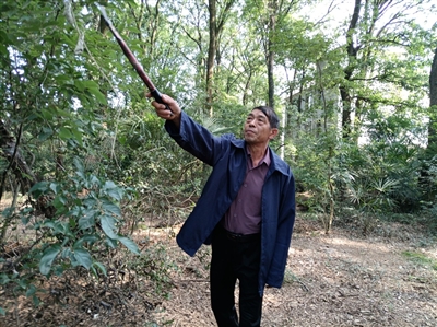 59岁的杨继平与往常一样,早早便开启了巡山工作。身为泉湖村的村支书,杨继平平时很忙,而巡视300亩的自然林是他33年来每天必须要做的事。