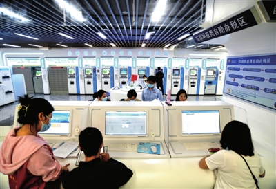 日前,赤壁市政务服务中心办税大厅互联网应用自助办税区,市民在自主办理涉税业务。