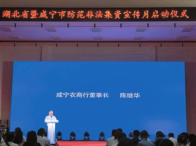在活动启动仪式上,咸宁农商行董事长陈继华作为全市唯一金融机构代表发言。他说,“听党指挥、替政府分忧、湖北人民信赖、普通百姓满意”是农商行坚定的政治站位和责任担当;以存款防非法集资,以贷款解老百姓高息民间借贷、网贷之苦,是农商行的追求。全市农商行存贷款规模已突破1000亿元,农商行会坚决守护老百姓的血汗钱、读书钱、养老钱安全,也请老乡们选择正规银行,共同维护金融安全稳定;农商行会继续发挥网点遍布城乡的优势,派驻“金融村官”,开展公益活动,让老百姓了解更多金融知识,守好自己的钱袋子,免受非法集资的侵害,同时咸宁农商行将一如既往加大科技投入,积极配合政府,排查非法集资风险隐患。