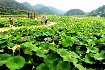 2017年,在咸宁市委办驻村工作队的帮扶下,石门村将太空莲发展为特色产业之一。石门村充分利用当地生态资源优势,培育特色农业产业,村里流转土地集中连片种植油菜、莲藕等具有观赏性的经济农作物,发展乡村旅游,推进“农业+旅游”深度融合。以油菜花、荷花等花卉为媒,吸引大批游客前来观景赏花、体验农事,带动当地菜籽油、莲蓬、莲藕等优质特色农产品销售。