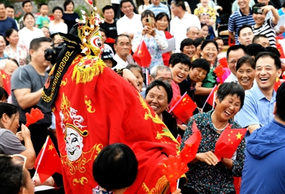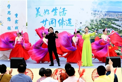 台上,演员们倾情为大家带来湖北大鼓《如此媳妇》、杂技《中国力量》、川剧《变脸》等形式多样、内容丰富的文艺表演;台下,老百姓兴致勃勃地欣赏演出,不时发出喝彩声、鼓掌声。
