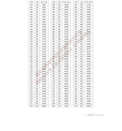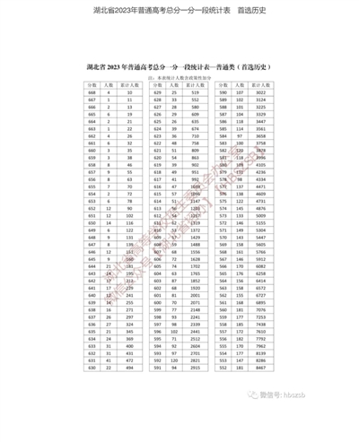 湖北省2023年普通高考总分一分一段统计表——普通类(首选历史)