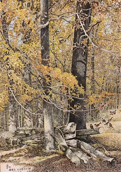毛才奇老师作品题材多样,人物、花鸟、山水都有,但是他的最爱是枫杨。