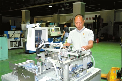 精准服务,排忧解难,做中小企业的好帮手。鲁登峰作为研究院一名技术人员,不仅仅局限于企业现有需求,而是根据自身的经验和技术主动为企业提供更优的建议和解决方案。2021年,湖北福人金身药业需要开发一条自动化流水线,鲁登峰同志先后多次前往福人金身药业了解生产情况,与生产和技术部门相关人员沟通,确定解决方案。在成品检验车间考察时,他观察到口服液灯检机进料口有两名工人托着料盘上料,工人忙碌一天,腰酸背痛。鲁登峰仔细察看,提出改进方案,方案实施后效果显著,企业赞不绝口。