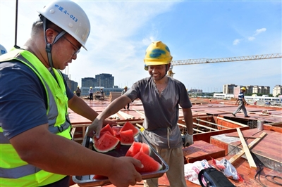 但是,城市里始终有一群辛劳的工作者,在高温的炙烤下默默坚守。环卫工、交警、建筑工、快递员……他们顶着烈日,直面酷暑,用汗水诠释责任与担当,正是他们的“负重前行”扛起了我们的“岁月静好”。