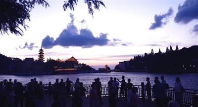 7月12日,夜幕下的通山县九宫山云中湖,凉风习习,景色迷人,吸引不少市民游客前来避暑纳凉。