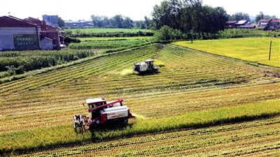 眼下正值水稻“双抢”季节,7月11日,嘉鱼县陆溪镇广大农户抢抓晴好天气,组织农机开镰收割,田间地头,机声隆隆,稻浪阵阵,呈现出一片忙碌的夏收景象。