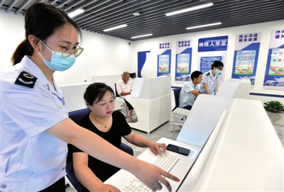 近日,赤壁市政务中心纳税人学堂,市民正在工作人员的帮助下操作税收软件。