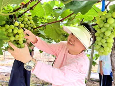 七月中旬,赤壁的葡萄渐渐成熟。走进柳山湖镇易家堤村葡萄采摘园,一串串葡萄挂满架,像玛瑙、似翡翠,还有一股沁人的果香。葡萄园的技术员介绍,这里的葡萄有葡之梦、夏黑、醉金香、阳光玫瑰、南太湖特早、巨盛一号等10余个品种。