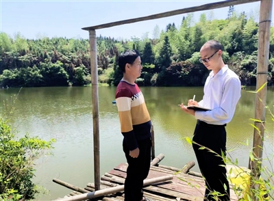 7月12日,在崇阳县石城镇,“金融村官”王康来到了白螺村入户走访。白螺村是镇里的渔业大村,这段时间是鱼类旺盛的生长期,对饲料、鱼药有着巨量需求。王康通过走访来解决村民资金需求。