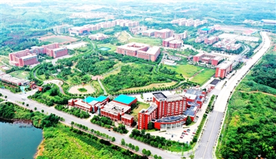 日前,无人机视角下的咸宁职教园,校园绿树成荫,宛如一幅绿色生态画卷。近年来,我市不断加大教育投入,推进教育改革,优化育人环境,助力学生全面健康成长。 记者 袁灿 摄
