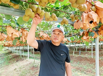 漫步在绿茵茵的猕猴桃园,袁炎良满脸骄傲。