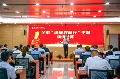 本报讯 通讯员雷涛、陈醇报道:清风拂面,共话清廉。8月24日晚,咸宁成功举办了全市“清廉农商行”主题演讲比赛,来自不同网点的19名选手同台竞技,分享廉洁故事。咸宁农商行党委委员、行长熊精干出席比赛,党委委员、副行长马冠峰现场致辞,党委委员、副行长张淼、邓伟祥、王平涛担任内部评委。