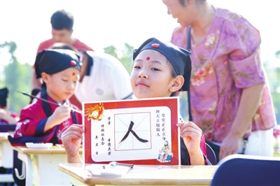 身着传统服饰,行古礼、正衣冠,点砂启智、启蒙描红、击鼓鸣志……在华师赤壁学校、通山县实验中学等校,学生们用传统“入泮礼”“开笔礼”开启新学期。