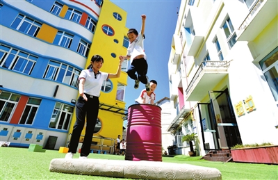 一群小学生头戴安全帽,跟着工人师傅搬砖……这样的场景为何出现在学校里?