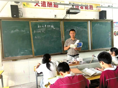 为此,上课的时候,徐纯湖激情澎湃地在黑板上挥洒出他那俊秀的字迹,鼓励每一个学生积极发言;课下,他则经常坐在班里,陪着学生学习,跟孩子们谈心。