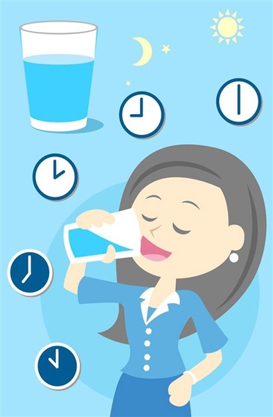 盛水的器具应经常清洗消毒,保障饮水卫生;建议少量多次饮水,每日饮水量不少于1200ml。