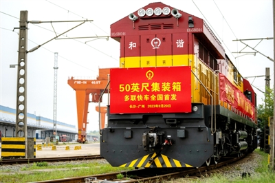 9月20日上午,一列装有50英尺集装箱的铁路多联快车从长沙北站开出,这标志着国内容积最大的民用集装箱正式上线发车。
