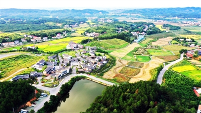 9月17日,无人机视角下的咸安区高桥镇白水畈田园综合体,景美如画。近年来,咸安区高桥镇依托丰富的乡村自然资源,按照农旅融合思路,打造环境优美、业态丰富的白水畈田园综合体,逐步形成“农旅相融、以农促旅、以旅兴农”的发展格局,促进农民增收,助力乡村振兴。 记者 袁灿 摄