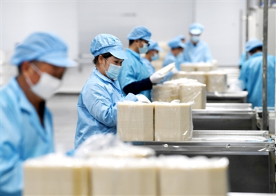 10月25日,湖北诚盈超远生物科技有限公司生产线上,员工正在严把产品质量关。该公司主要生产可降解一次性餐盒,去年12月份建成投产以来,坚持以市场为导向,积极加大人才引进和研发投入,生产的系列产品俏销国内市场,实现年产能1.2亿套,产值1亿元。