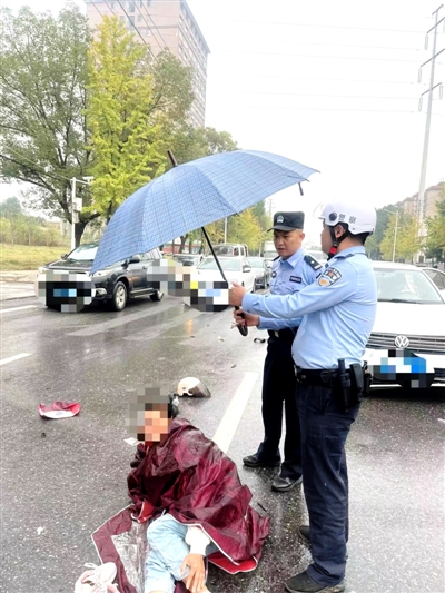 此时正在下雨,为防止伤者淋雨,民警立即找来雨伞,在伤者身旁为其撑起雨伞,默默等待救护车到来。不久后,救护车到场,民辅警配合医护人员将伤者抬上车,送往医院救治。随后,两人返回工作岗位继续执勤。民辅警的暖心行动受到周边群众的一致称赞。