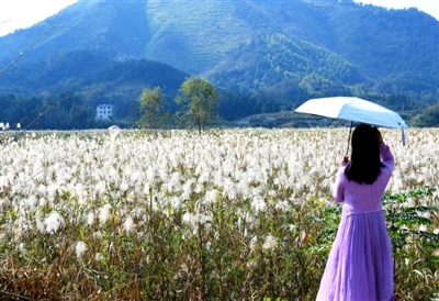 11月3日,通山县燕厦乡甘港村和洪港镇下湾村交界处芦苇荡,盛开的芦苇花与游人相映,与秋风共舞,与秋水相依,呈现出一片深邃的宁静。