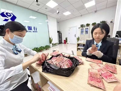 工作人员立即暖心安慰佘先生,并告知他将按照规定进行现金兑换,尽其所能帮助降低损失。经过两天的奋战,最终成功兑换了100900元现金。