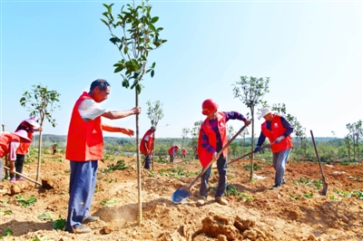 近日,咸安区官埠桥镇雨坛垴村宇涵苗木专业合作社基地,当地农户正在种植桂花苗。