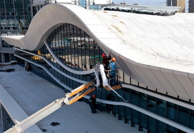 12月6日,崇阳县城西客运站,工人们正在进行项目收尾工程。