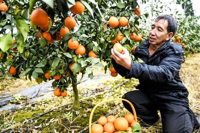 2018年,七彩农场负责人张太军从浙江引进日本“红美人”果冻橙品种,目前有果冻橙面积70亩,其中已丰产面积30亩,今年已销售6万斤,还有6万斤预计在春节期间上市。