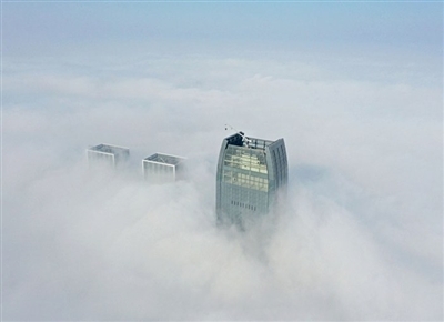 近日,江西南昌大雾天气持续,城市高楼若隐若现。 (本报综合)