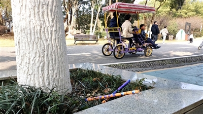 1月1日,记者在城区十六潭公园看到,依然有少数市民违反规定,在禁鞭区燃放烟花爆竹,并将燃放垃圾随意丢弃,这样的行为既不文明还给城市环境造成了污染。 赵忠志 摄