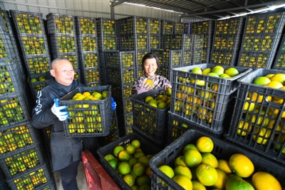 据介绍,该庄园的甜桔柚由桔子和柚子嫁接而成,果肉甘甜,储存期长,每棵树产量60公斤左右,年产值达200余万元。