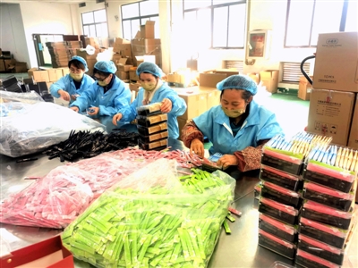 近日,湖北青砖茶产业发展集团生产车间,工人们正加班加点生产袋泡青砖茶。