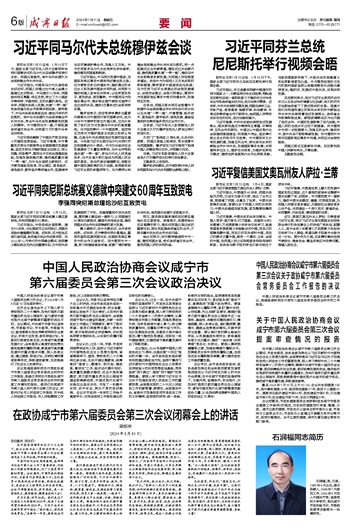 中国人民政治协商会议咸宁市第六届委员会第三次会议政治决议