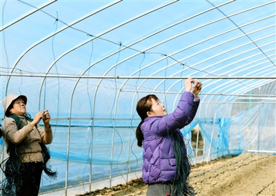 近日,位于咸安区浮山街道白鹤村的咸宁市麒鹤现代农业种植专业合作社设施大棚内,工人们正在系吊绳、拉钢丝,为种植千禧果做准备。