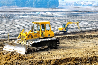1月3日,咸安区浮山街道白鹤村余马湾、韩家滩的高标准农田改造现场,挖掘机和推土机来回忙碌,进行清挖沟渠和土地平整作业。