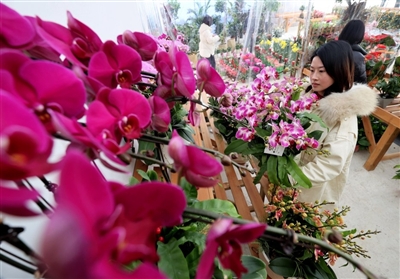 ◀1月22日,市民在浙江省湖州市德清县一处花卉市场选购花卉。