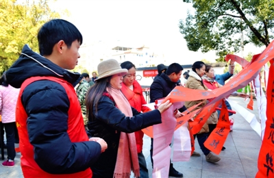 当天,该镇新时代文明实践所联合镇纪委和政法办,举行“我们的节日·精神的家园”春节赠春联、剪窗花、送祝福活动。来自当地的书法家现场书写春联,赠送给在场居民,当日送出春联、窗花等800多副。