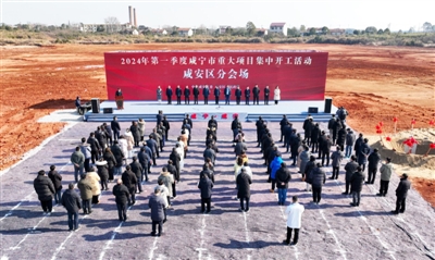 1月25日上午,在咸安经济开发区东湖高新咸安产业园,咸安区2024年一季度19个重点项目集中开工。