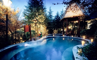 露天泡池区内几十个风格各异,大小不一的功能温泉池吸引了来自全国各地的游客。