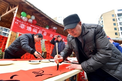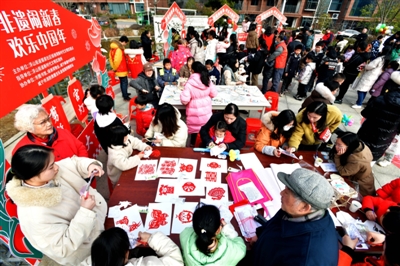 活动现场,写春联、剪窗花、做糖画、藤编、钩织……丰富多彩的非遗项目吸引了周边众多居民参与其中,营造出浓浓的节日氛围。