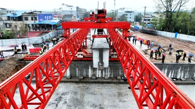 11月9日,崇阳四桥改建工程首片40米预制T型梁完成架设,这标志着大桥建设进入一个新的关键阶段。