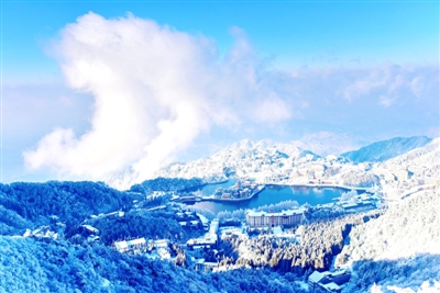日前,通山县九宫山镇云中湖周围被冰雪覆盖,一片白雪皑皑的景象。