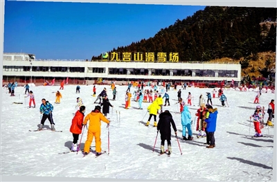湖北省九宫山旅游开发有限公司景区事业部副总经理阮诗燎介绍,九宫山滑雪场面积6万平方米,配备多套大小魔毯和全套造雪设备,可同时容纳4000人游玩。目前,武汉、咸宁、赤壁三地游客可乘专线直通车,直达九宫山滑雪场。