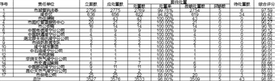 注:1.综合评分=处置数/(总处置数-市城管执法委处置数)×10%+处置数/应处置数×80%+按期处置数/应处置数×10%,经加权后得出;
