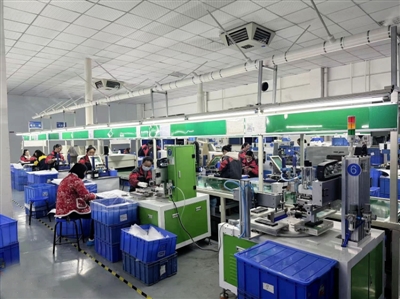 不同的流水线上,工人们紧张有序地将一个个不同型号的遥控器从线路板组装成成品,经过最后一道质检后封装入箱。