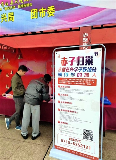 为促进青年就业创业,赤壁团市委开设政策推介窗口,现场宣传就业政策,提供就业创业咨询,把贴心服务送到广大青年身边。赤壁团市委充分发挥团组织联系青年、服务青年的纽带作用,为来往咨询的广大青年应聘者发放宣传资料100余份,为青年就业者、创业者提供政策咨询,为来往咨询的广大青年应聘者发放宣传资料100余份,介绍“希望工程”“人才引进”“招硕引博”等政策措施。为返乡大学生普及“赤子归巢”赤壁籍在外学子联络站、“青年夜校”等项目。