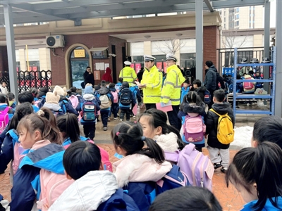为应对开学第一天交通流量增大,易发生交通拥堵的情况,交警大队民辅警提前上岗,紧盯辖区主要路段以及校园周边车流变化,通过定点值守、路面巡逻,全力清理违停车辆,引导过往车辆减速慢行,指挥接送学生车辆即停即走,护送学生安全通行,劝导学生家长遵守“一盔一带”,全力营造校门前及周边道路良好交通秩序。