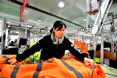 近日,霍能(湖北)实业有限公司制衣车间,工人们正在流水线上赶制一批发往国外的订单。